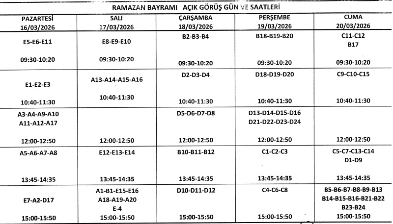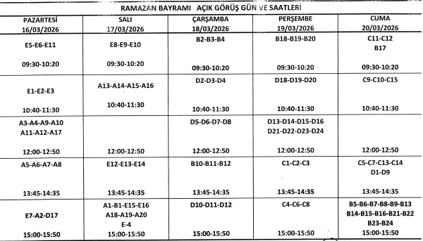 - HÜKÜMLÜ VE TUTUKLULARA RAMAZAN BAYRAMI AÇIK GÖRÜŞÜ 16, 17, 18, 19, 20, MART TARİHLERİNDE YAPTIRILACAKTIR.